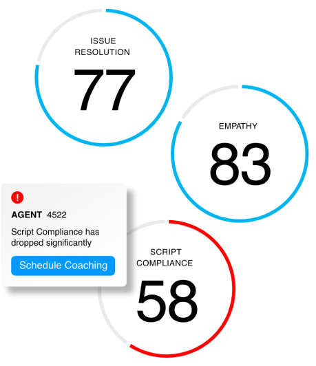 Objective Evaluation: Obtain transparent and holistic scores based on key metrics such as agent knowledge, empathy, customer effort, and more.