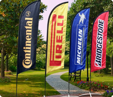 Our Custom Flag Banners are designed to make a bold statement, these flags seamlessly capture attention, whether fluttering on a busy street or standing tall at trade show events. Crafted for high-impact marketing, our flags offer a chance to showcase your business name, logo, and colors prominently to both edestrians and road traffic.